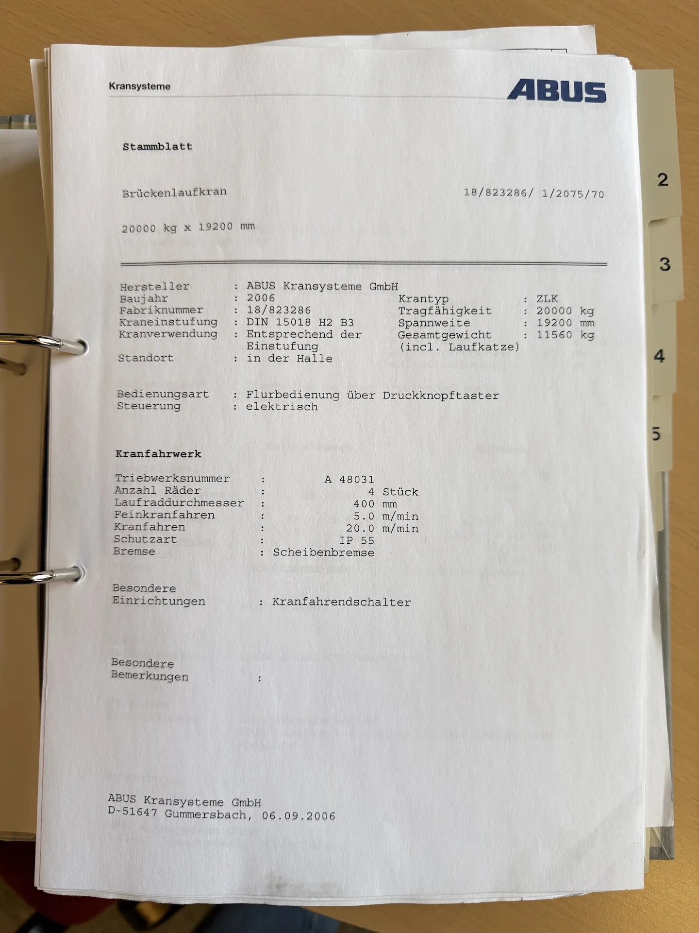 – Kraanboek aanwezig: ja