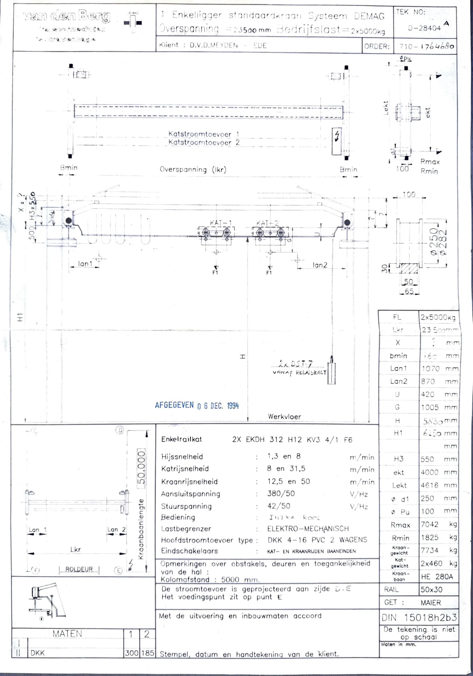 – Soort takel: staaldraadtakel, Demag DH