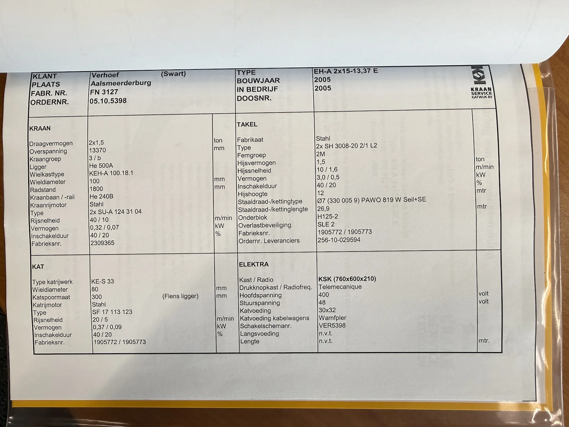 – Soort takel: staaldraadtakel